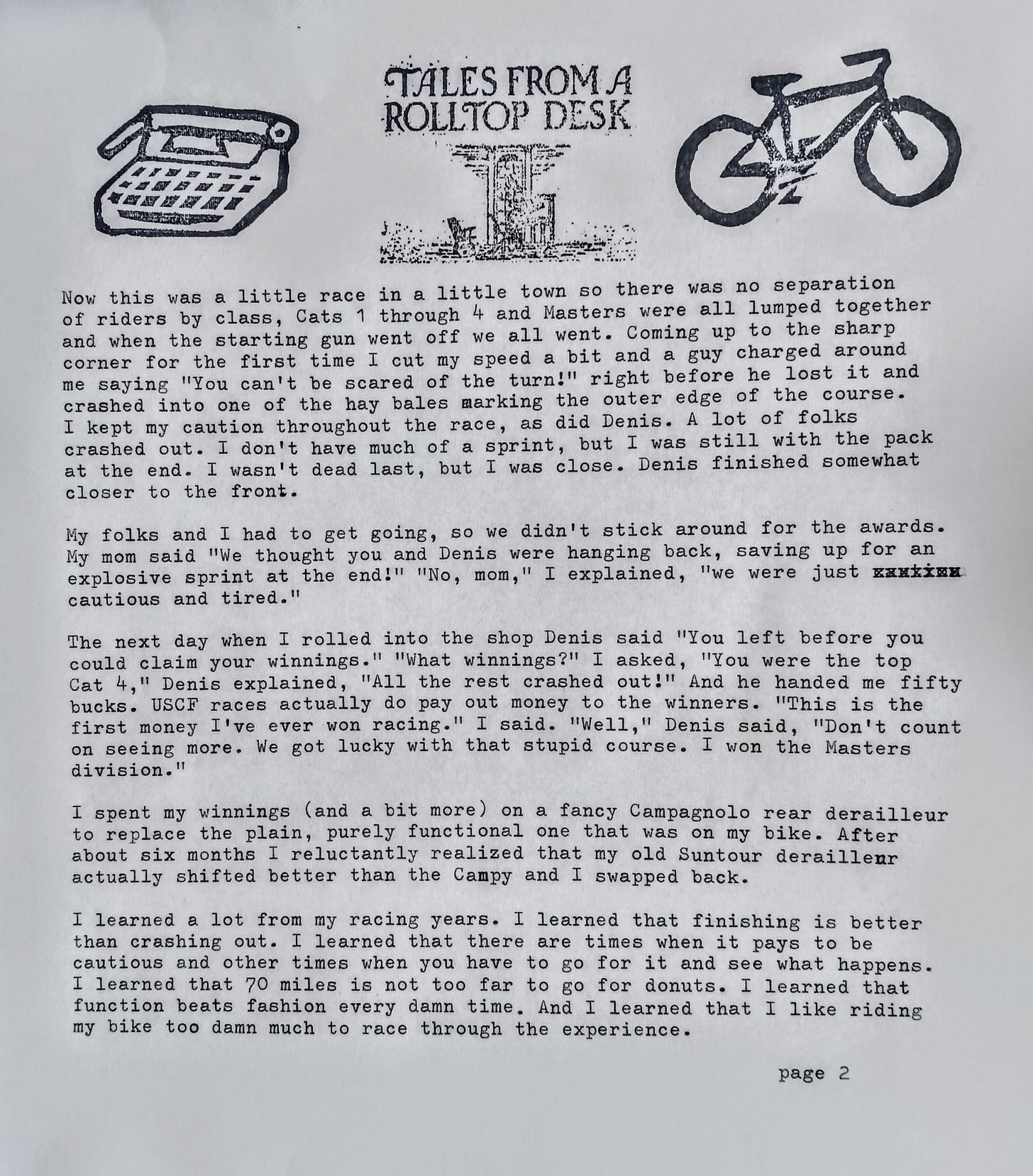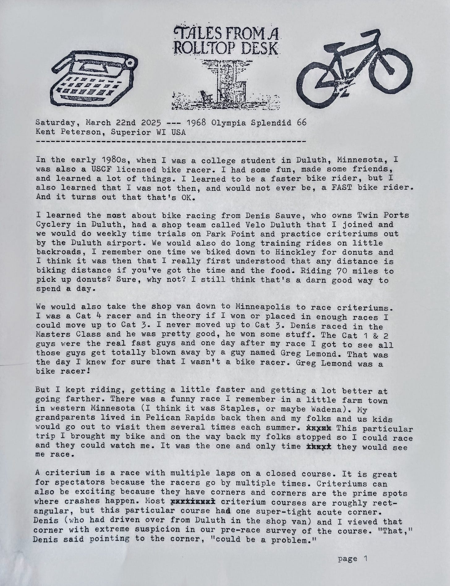 That sounds like it was a while ago considering you walk a lot now. I do read where you ride your bike, but you ride a lot more now than I ever did when I was younger. A friend of mine back in Arkansas was a bike rider. His wife told us he would ride from Wynne, Arkansas to the old Memphis bridge then travel down riverside drive get on the newer bridge and ride back to Wynne. I never figured exactly how far it was, but I told him I was tired just listening to him.